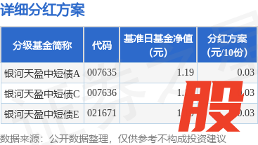 本站消息汇丰配资,6月18日发布《银河天盈中短债债券型证券投资基金分红公告》。2025年度第一次分红。公告显示,本次分红的收益分配基准日为6月6日,详细分红方案如下:
