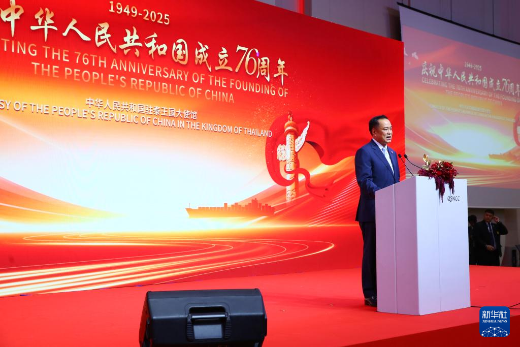 阿努廷当天出席中国驻泰国大使馆在曼谷举行的庆祝中华人民共和国成立76周年招待会。他在致辞时表示,泰中关系亲如一家,数以百万计的泰国民众都有着与中国先祖相连的文化渊源和血脉。这种联系是两国友谊的重要基石,深深植根于我们共同拥有的历史、传统和价值观之中。